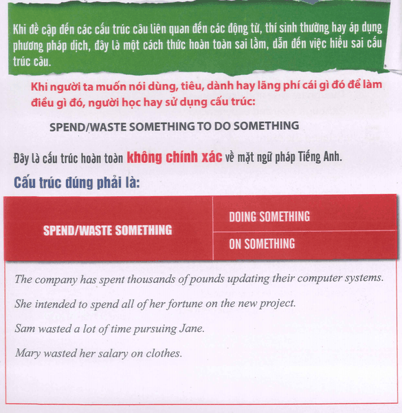 Ngoài ra, còn có một số cấu trúc khác liên quan đến Spend như: Spend + V-ing, Spend + (time/money/effort) + doing something, Spend + (time/money/effort) + on something, Spend + Noun + (time/money/effort), Spend + Noun + doing something.