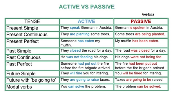 - Trong câu "Quần áo đang được giặt bởi cô ấy", động từ là "giặt" và chủ thể trở thành "quần áo", trong khi "cô ấy" trở thành người thực hiện hành động.