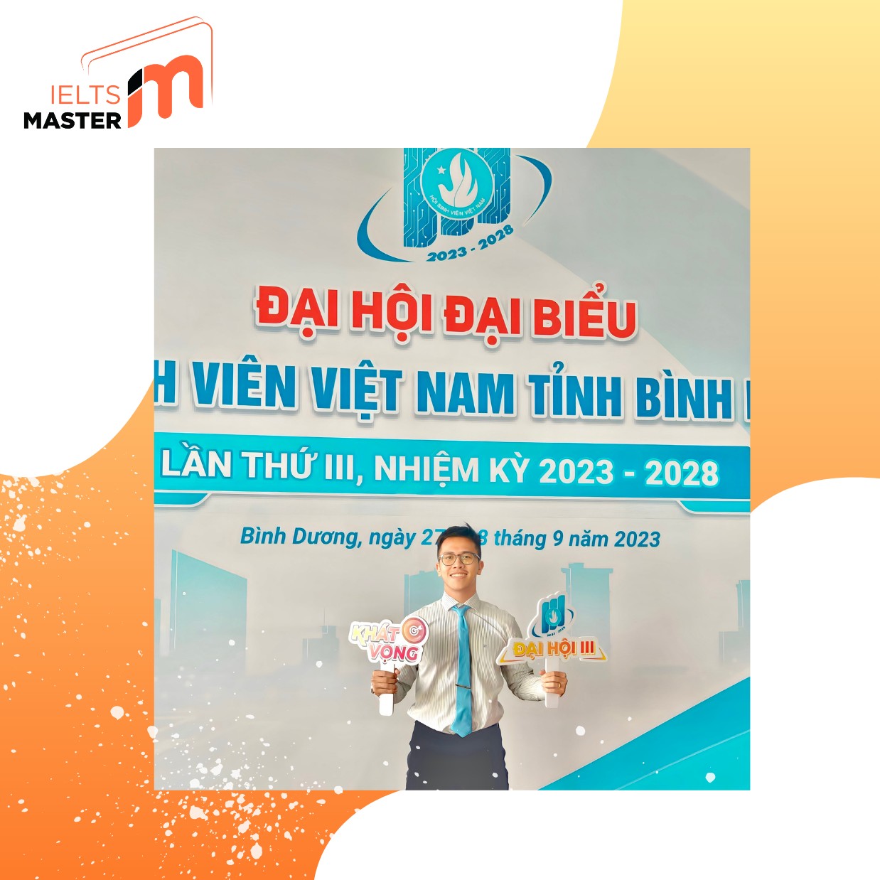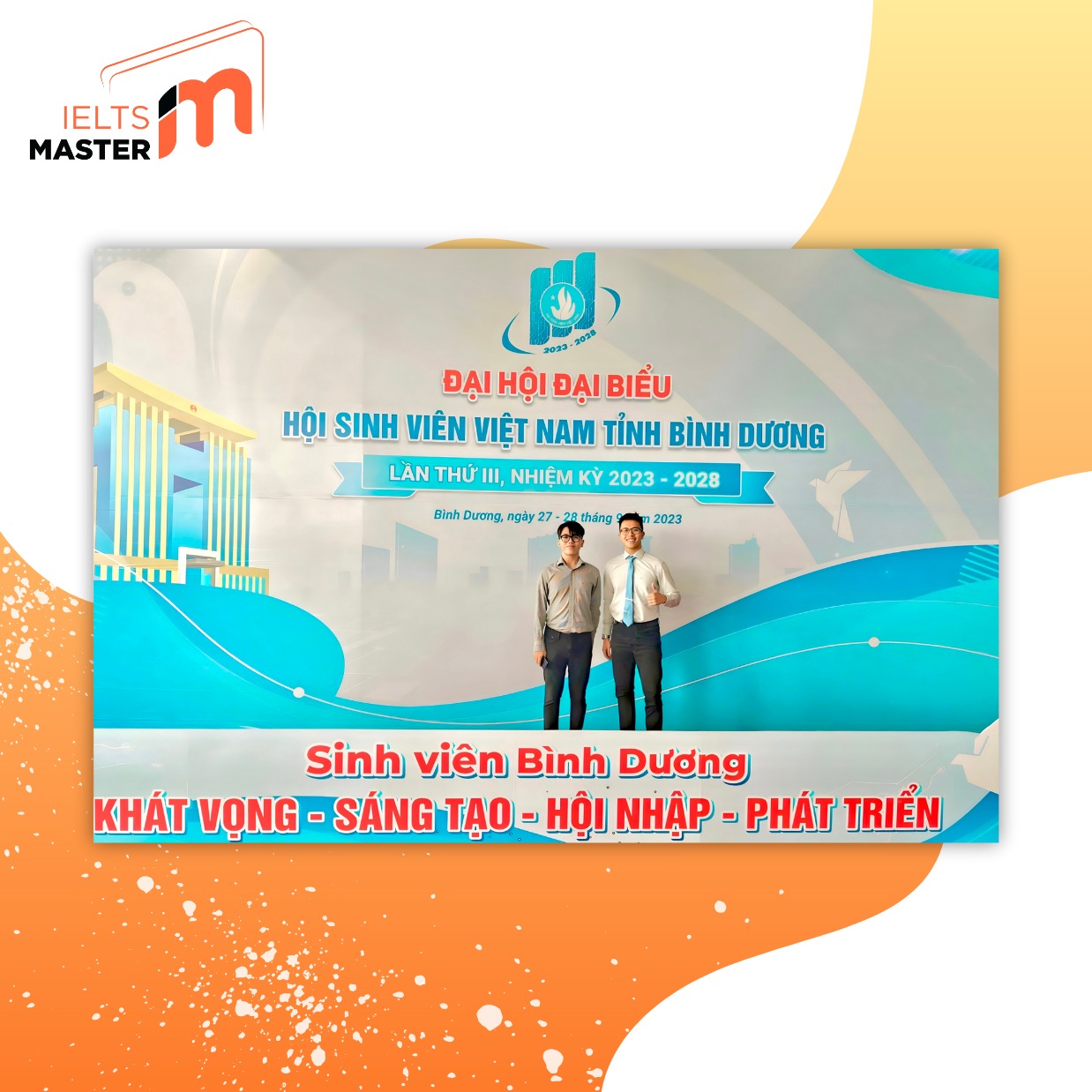 Sáng ngày 28/9/2023, IELTS Master - Bình Dương vinh hạnh được tham dự Phiên bế mạc Đại hội đại biểu Hội Sinh viên Việt Nam tỉnh Bình Dương lần thứ III, nhiệm kỳ 2023 – 2028 tại Trung tâm Hội nghị và Triển lãm tỉnh do Ban Chấp hành Hội Sinh viên Việt Nam tỉnh Bình Dương long trọng tổ chức. Đây là sự kiện quan trọng của sinh viên tỉnh, đánh dấu bước phát triển mới của công tác hội và phong trào sinh viên theo hướng chuyển đổi số.