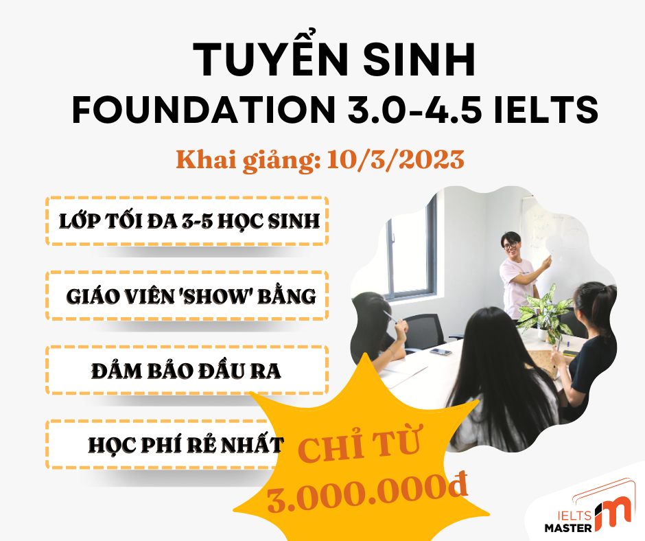 IELTS Master khai giảng lớp FOUNDATION ngày 10 tháng 3 năm 2023